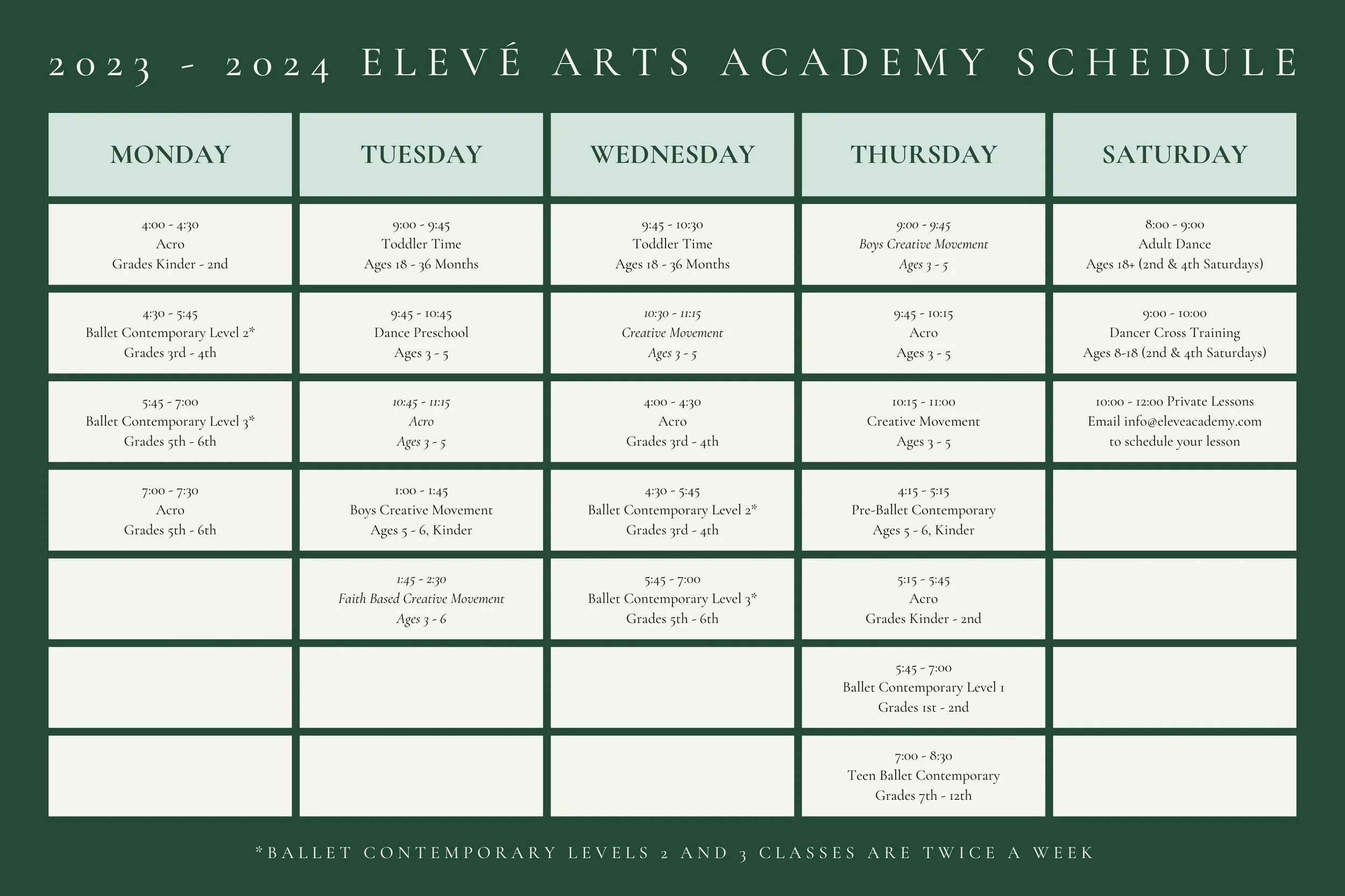 We love having your child at our studio. We don’t love sharing germs. If your child is showing any of the below symptoms, and there is no known and non-contagious cause (teething, allergies, etc.), please keep your child home from class. If you know in advance that your child will be missing class, please let your teacher know. You are welcome to attend a make up class as soon as your child is better. Please email info@eleveacademy.com to let us know what class you plan on attending so that we can prepare accordingly.